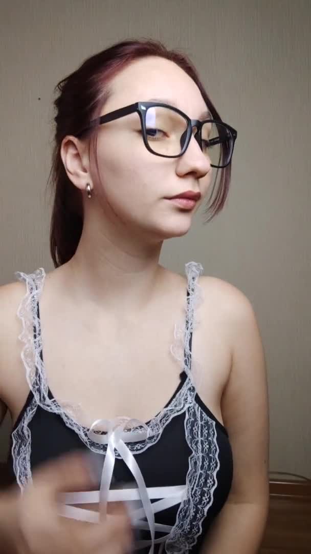 Sexy brunette in glasses playing with her big tits and Hitachi (63e291fba273c)